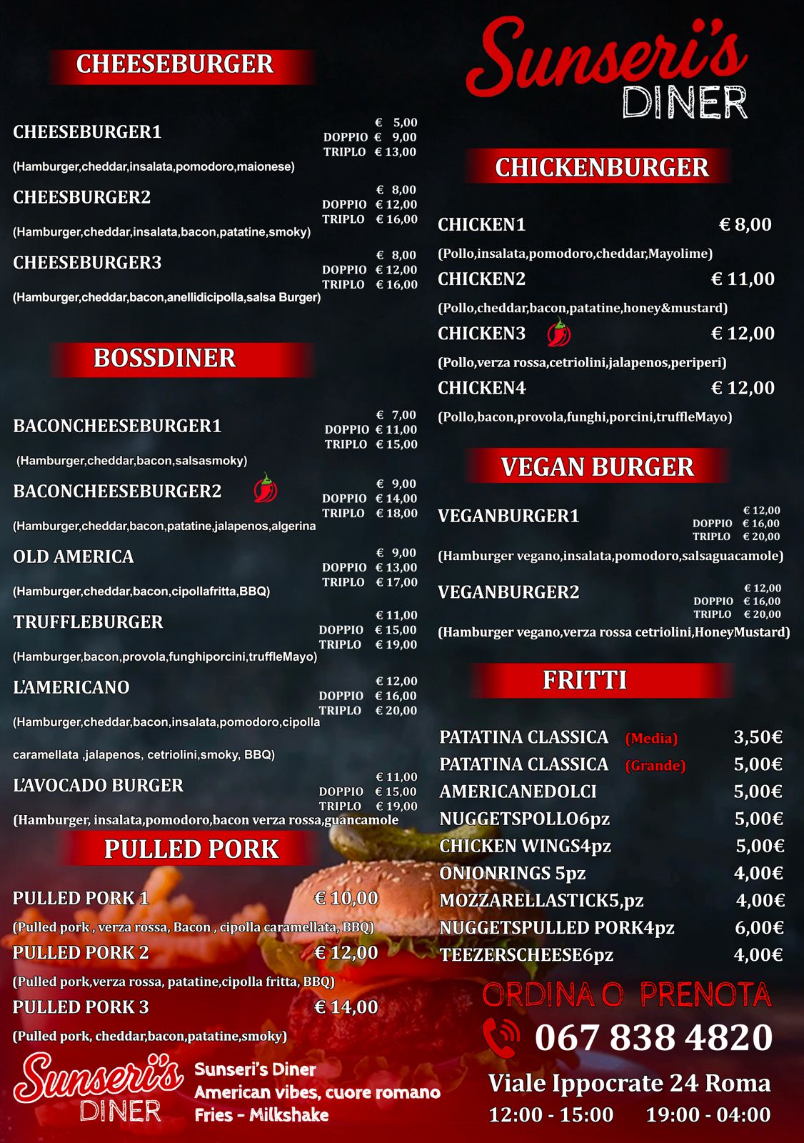 Sunseri's nasce dalla passione per gli hamburger di alta qualità e dalla volontà di offrire un'esperienza culinaria unica a Roma. Utilizziamo solo ingredienti freschi e selezionati per creare panini gustosi e indimenticabili.